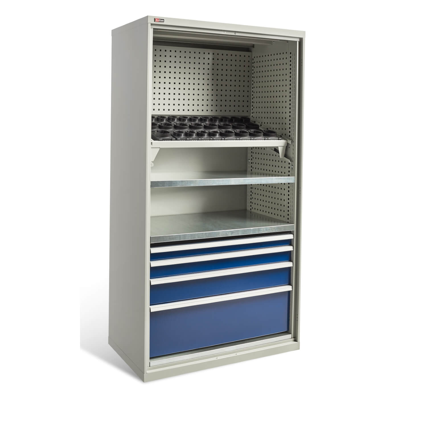 Внутреннее наполнение шкафа состоит из следующих модулей: ВC-05 Ящики разного размера, ВС-05 Полка цинк, ВС Платформа выкатная, Системы антиопрокидывания, ВС-053/055 Экраны боковые, ВС-03/05 Экран в тумбу, Салазки и Рамы под держатели инструмента и др. Шкаф моделируется индивидуально, с использованием перечисленных модулей.