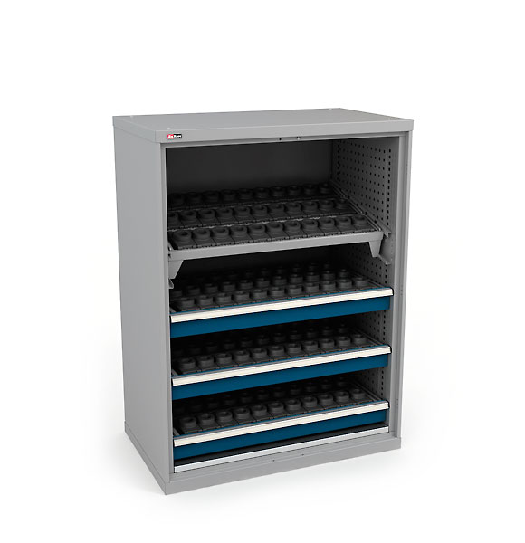 Внутреннее наполнение шкафа состоит из следующих модулей: ВC-05 Ящики разного размера, ВС-05 Полка цинк, ВС Платформа выкатная, Системы антиопрокидывания, ВС-053/055 Экраны боковые, ВС-03/05 Экран в тумбу, Салазки и Рамы под держатели инструмента и др. Шкаф моделируется индивидуально, с использованием перечисленных модулей.